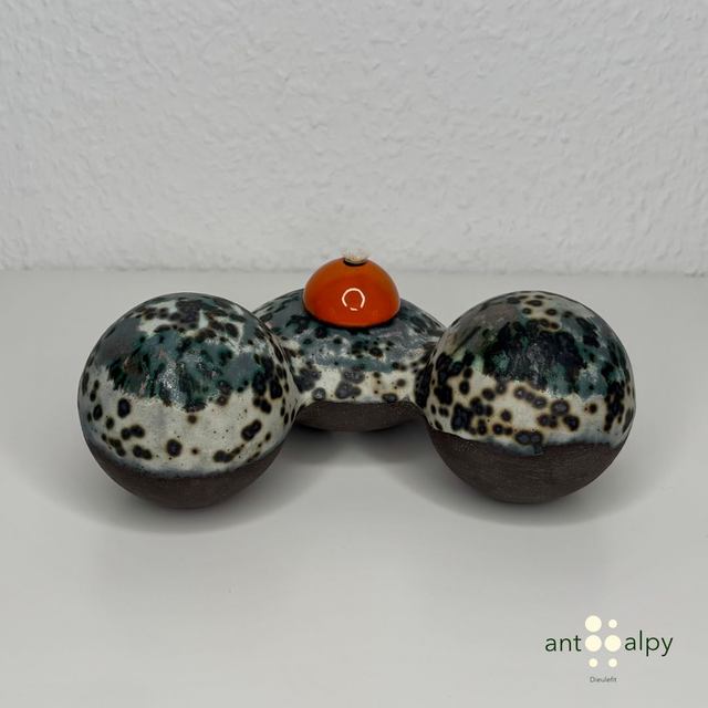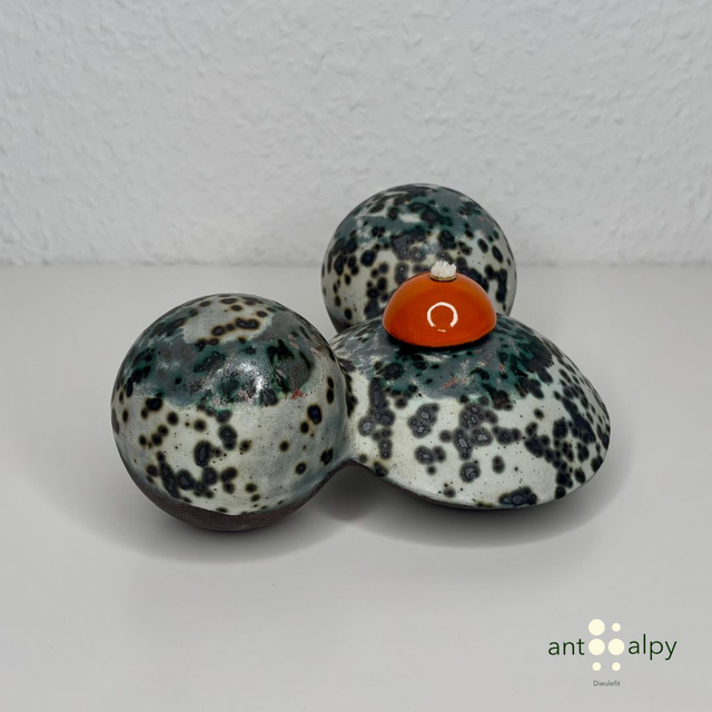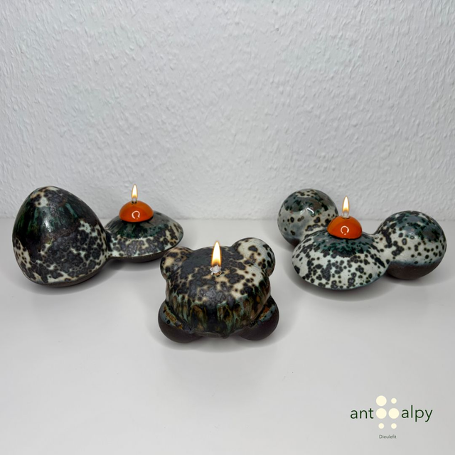 Presenting here an oil lamp made of stoneware and glazed. Ideal for a nice and cosy atmosphere in your living room.